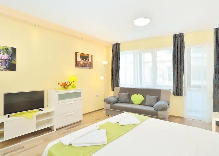 Royale Palms ve Burgas Arkeoloji Müzesi gibi Burgaz şehrinin görülecek yerleri yakındır. Kum heykeller bu tesise 2 km uzaklıktadır. Europese mutfağından yemekleri servis eden Happy Bar & Grill, daireden yürüyerek 5 dakika mesafededir. Mall Galleria Burgas Alışveriş Merkezi'a arabayla hızlı bir şekilde ulaşabilirsiniz.